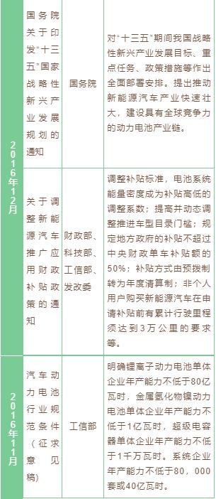 鋰離子動力電池是新能源汽車的核心部件,國家為加快新能源汽車產(chǎn)業(yè)化進程,頒布了一系列相關(guān)政策性文件,大力支持我國新能源汽車及動力電池行業(yè)的健康快速發(fā)展。同時,國家制定政策支持儲能技術(shù)發(fā)展以及產(chǎn)業(yè)化。