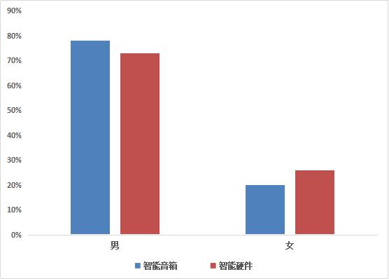 從上述圖表中可以看到在智能音箱使用上男性用戶居多。