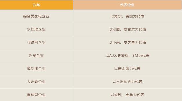 目前涉足凈水市場的企業(yè)大致可以分為以下八類: