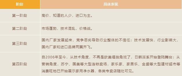 從中國家用凈水器的發(fā)展過程及技術(shù)趨勢來看,凈水器在國內(nèi)的發(fā)展大致可以分為以下四個階段:
