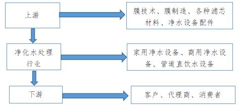 凈水器行業(yè)產(chǎn)業(yè)鏈上下游如下圖: