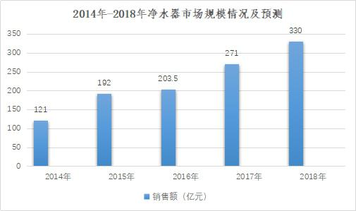 國務院要求提高民生工程和人民幸福指數(shù)的政策指導,將促使地方政府在公共設施方面增加投資,在公共場所安裝直飲水設備。根據(jù)國務院發(fā)展研究中心市場經(jīng)濟研究所調(diào)查:預計到2019年全國家用凈化水處理設備市場普及率將達到20%至30%,約3億人左右使用凈水設備,年平均增長率為30%。
