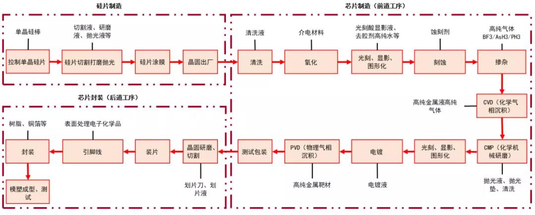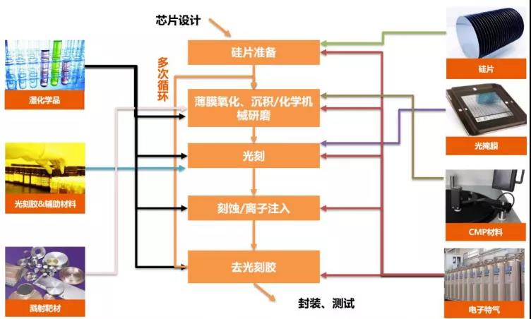 圖表2 芯片制造工序各單項(xiàng)工藝均配套相應(yīng)材料