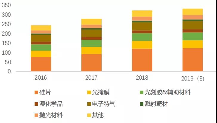 圖表5 全球半導(dǎo)體制造材料細(xì)分市場(chǎng)規(guī)模