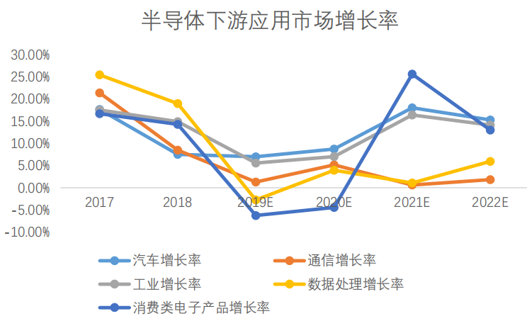 圖表13 半導(dǎo)體不同應(yīng)用市場(chǎng)增長(zhǎng)率情況
