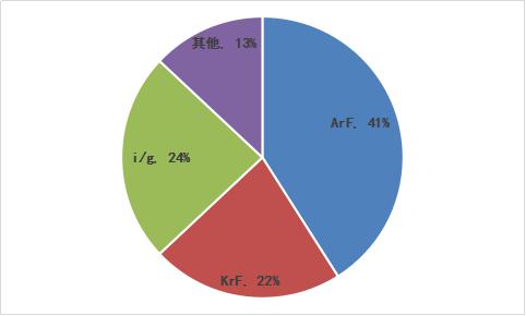 根據(jù)前瞻研究院數(shù)據(jù),半導體光刻膠領(lǐng)域中,i/g型光刻膠占總市場的24%,為4.15億美元;KrF型光刻膠占總市場的22%,為3.81 億美元;ArF型光刻膠占總市場的41%,為7.09億美元。