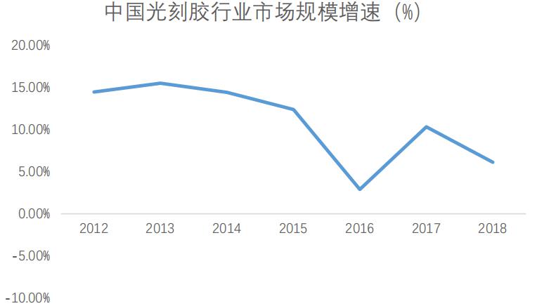 圖表4  中國光刻膠行業(yè)市場規(guī)模增速