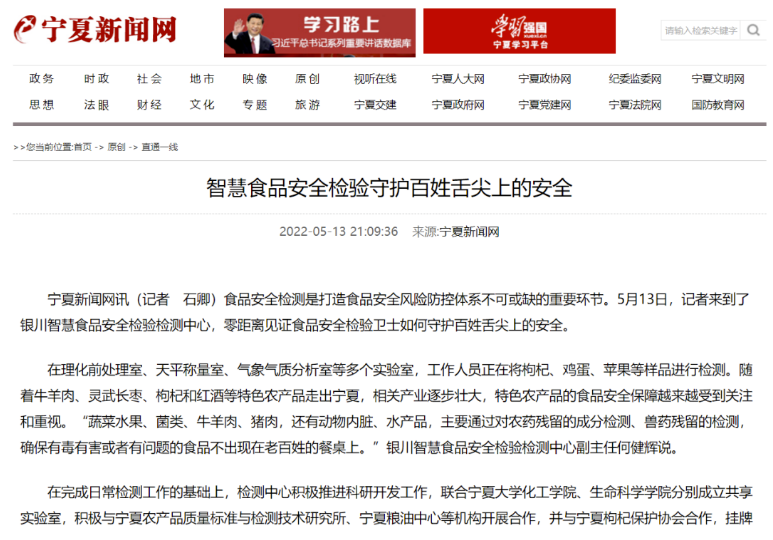 隨著牛羊肉、靈武長棗、枸杞和紅酒等特色農(nóng)產(chǎn)品走出寧夏、相關(guān)產(chǎn)業(yè)逐步壯大,對(duì)特色農(nóng)產(chǎn)品的食品安全保障越來越受到關(guān)注和重視。