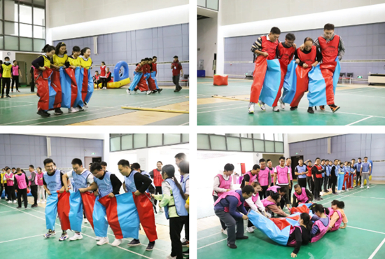 “螃蟹過河”挑戰(zhàn)團(tuán)隊(duì)協(xié)作與配合。每四人組成一只可愛的“螃蟹”,在最短的時(shí)間內(nèi)往返通過獨(dú)木橋的隊(duì)伍即獲得勝利。螃蟹服形態(tài)臃腫,褲腿相連,給隊(duì)員們?cè)鎏砹瞬簧俦荣愲y度,參賽隊(duì)員們?cè)跇O短的時(shí)間內(nèi)商量戰(zhàn)術(shù),迅速統(tǒng)一思想,賽場(chǎng)上他們口號(hào)整齊,步伐一致,為了完成同一個(gè)目標(biāo)而齊心協(xié)力、共同努力,在日常工作中積累的信任與默契展露無遺。